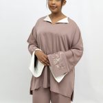 The embroidered sleeve cuffs add a refined detail that gives the set a timeless and elegant touch.